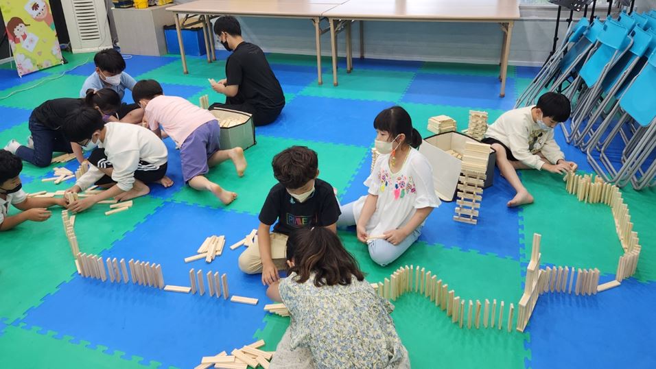 카프라로 도미노를 만들 때는 생각보다 쉽지 않았습니다. 100개 이상의 카프라를 세워 길을 만들다가 어느 순간 와르르 넘어질 때마다 아이들이 조금 짜증을 내기도 하였습니다. 하지만 다음에 또 하고 싶다는 아이들의 반응을 보니 카프라 수업을 계획하기를 잘했다는 생각을 해보았습니다.